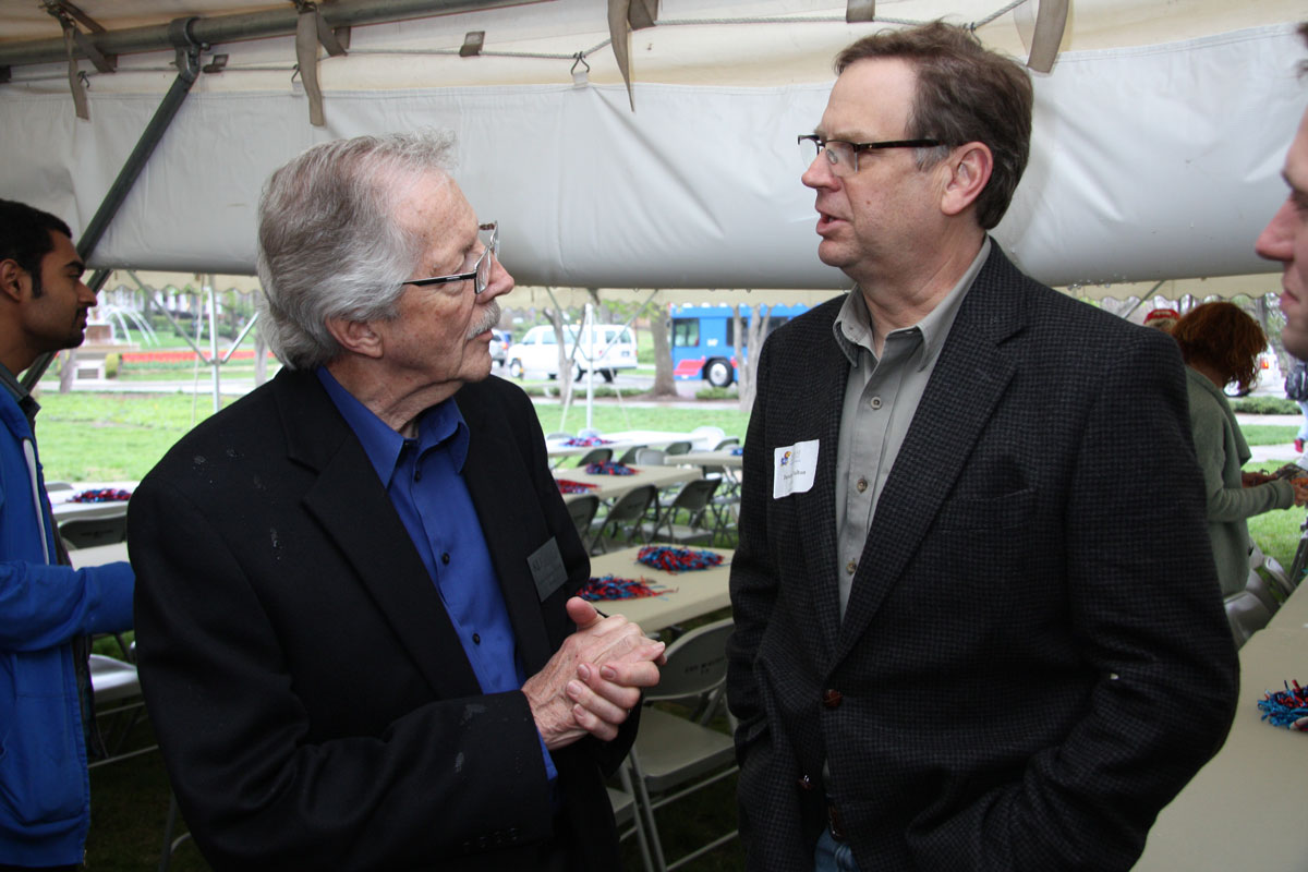 John Gaunt, dean of the School of Architecture, Design and Planning talks with Duncan Fulton, ’78, FAIA, President/CEO of the Good, Fulton & Farrell architecture firm based in Dallas, Tex.