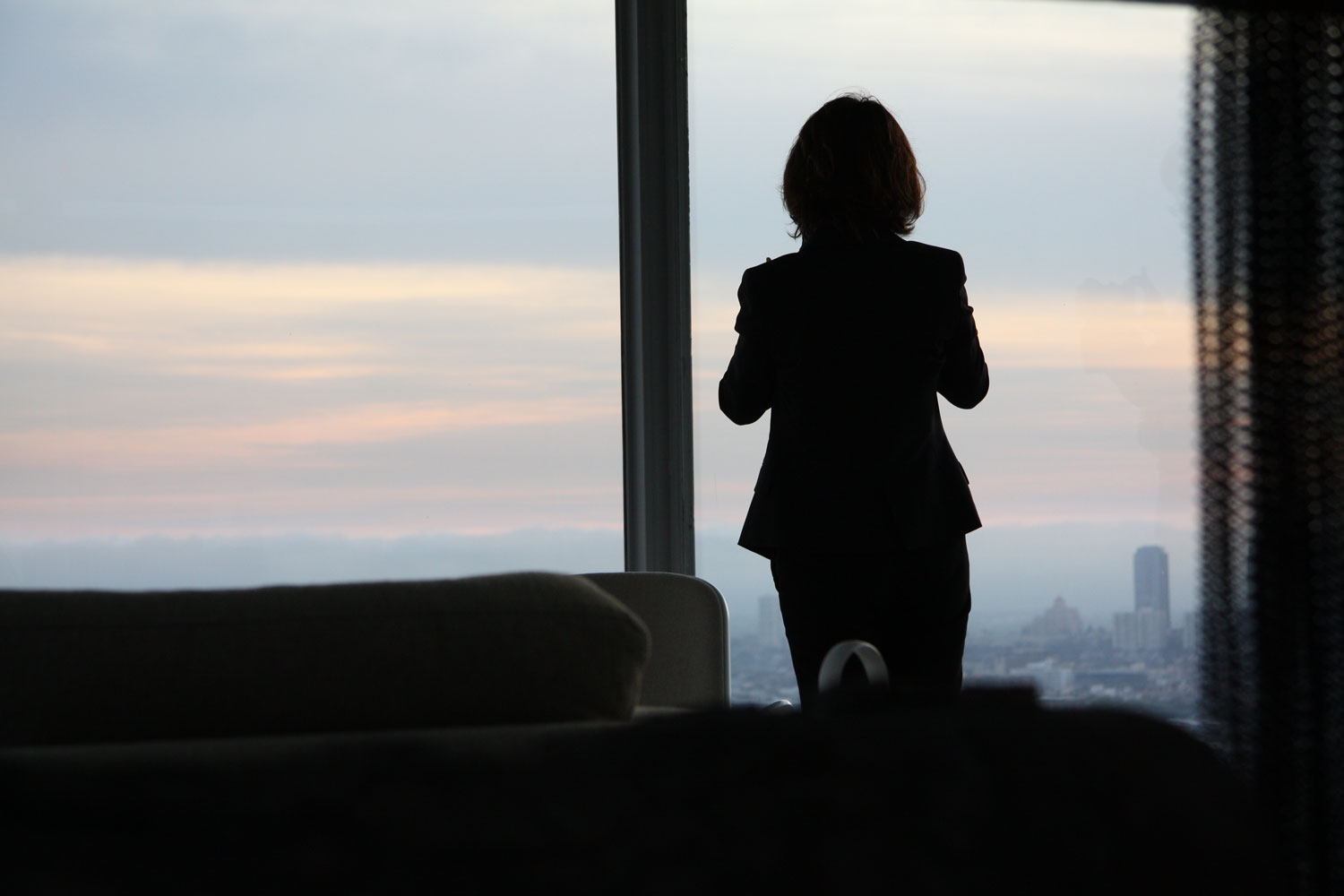 Akiko Takeyama gazes out on the city of Los Angeles.