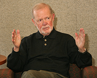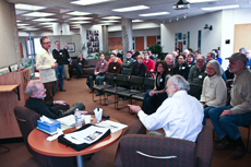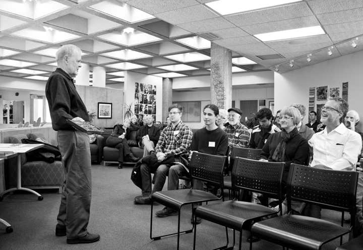Architect Ron Labinski, FAIA, speaks to the Lawrence Modern group about his design of the Nunemaker Center, February 23, 2014.
