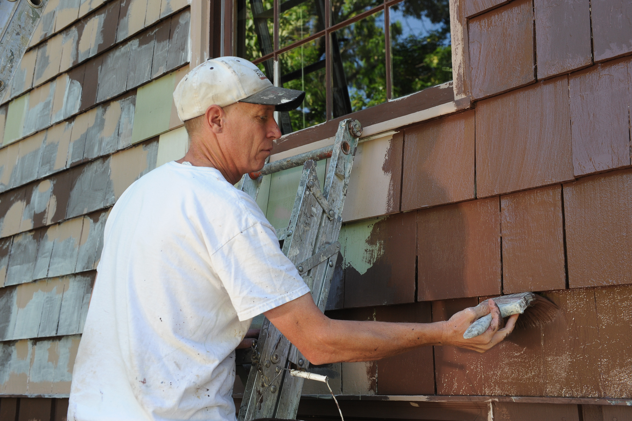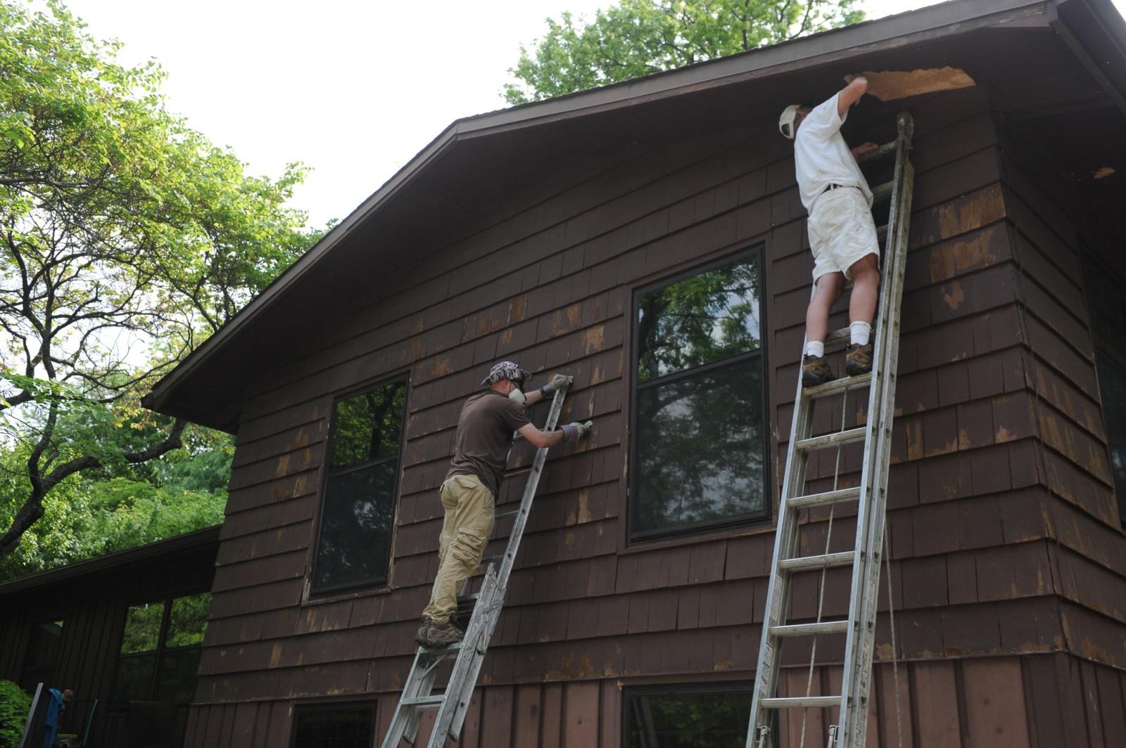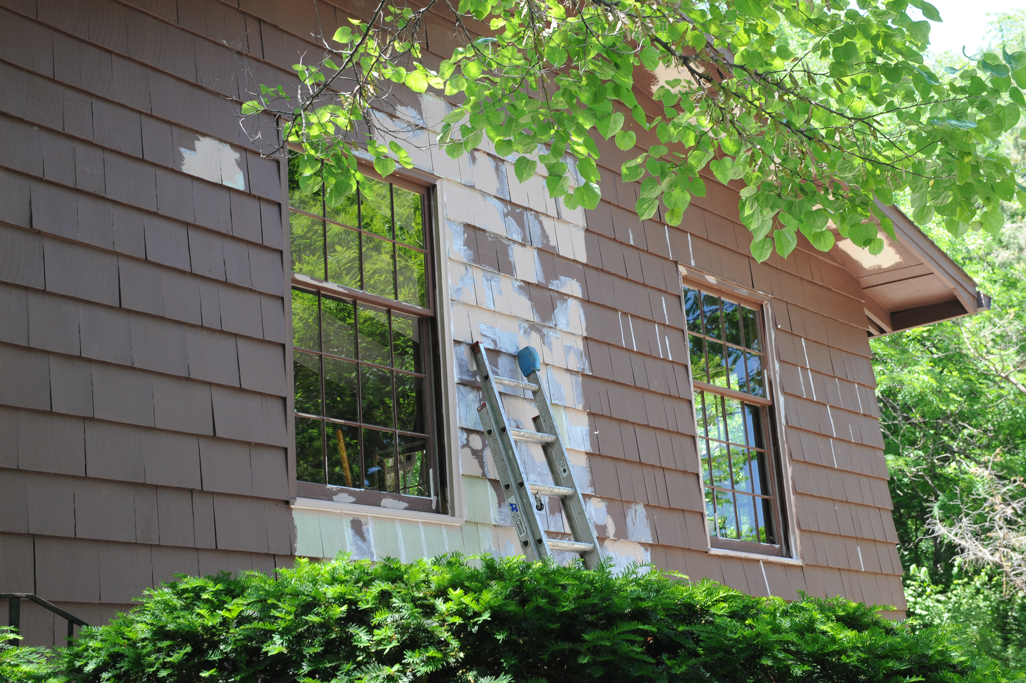 In our case, the inevitable became increasingly unavoidable about four or five years ago when I started to notice the telltale signs around our house: paint fading, cracking, peeling, bubbling; paint flaking away on window frames and sills, exposing dry-rotted wood; rotting wood along the bottom of cedar boards and cedar shingles; warped cedar siding. The deterioration was especially noticeable on the eastern facade, which endures a merciless pounding from the sun all summer long. Things were starting to look bad.