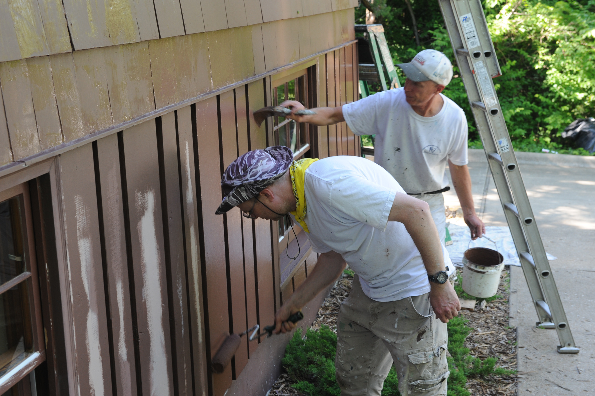 - Make sure you back brush if you spray paint the house. “A lot of contractors spray siding without back brushing,” Rob said. Back brushing essentially means brushing over freshly sprayed paint, getting into the gaps and crevices that are often missed by spraying.