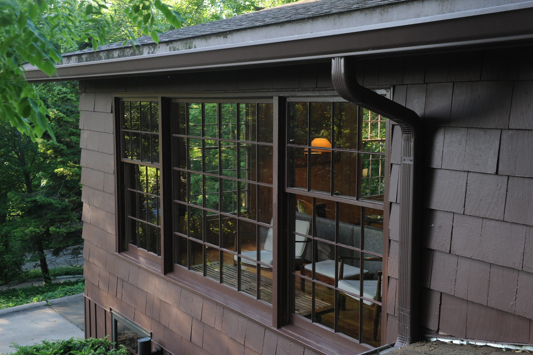 Aside from the new cedar siding, by far the most labor-intensive aspect of the job was the windows. Rob and his crew were responsible for painting around 383 of them, almost all framed by wood. Many needed to be reglazed and carefully prepped for repainting. The work required was painstaking and meticulous. This is where I tie back to my earlier contention that midcentury houses should be treated as historic houses because it is in the window detailing, in particular, that you often find the distinction and greatest need for preservation. How many midcentury modern houses have we seen that have been seriously marred by retrofitting the original windows with vinyl replacements that frankly don’t merit either the cost or energy savings? Too many.