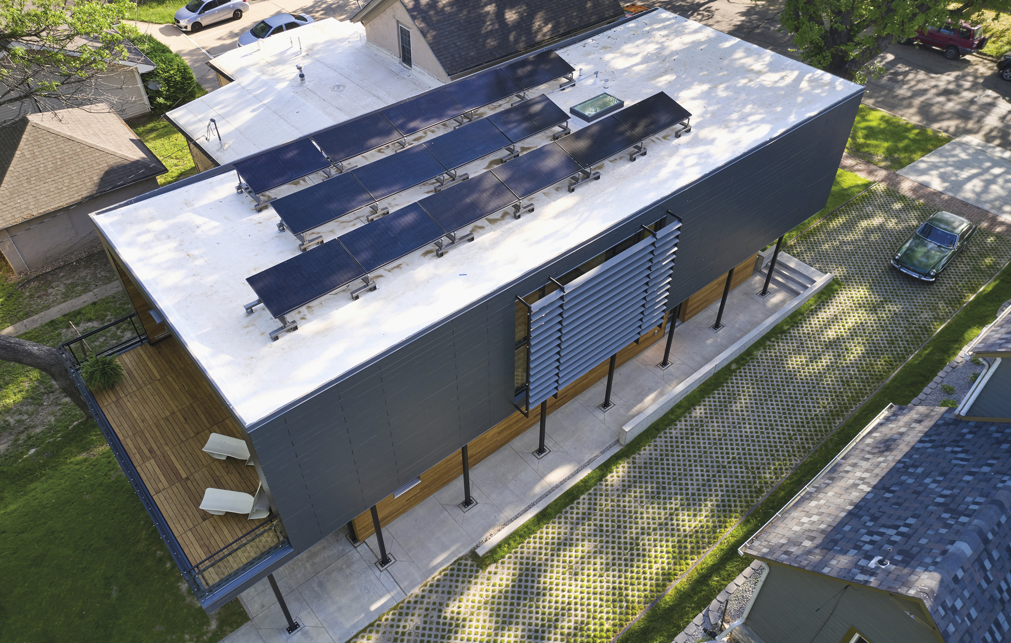While Rockhill has been maligned in the past for his preoccupation with tech-driven designs, if the open house was any indication, more people are starting to warm to his ideas. About a record high of 700 people signed in for the house tour, and the reception was, by all accounts, overwhelmingly positive. Many seemed genuinely interested in the green building’s tech (all seamlessly integrated), but the architecture elicited the most praise. “Really a beautiful and impressive statement,” said Jim Williams, a long-practicing architect in Lawrence.