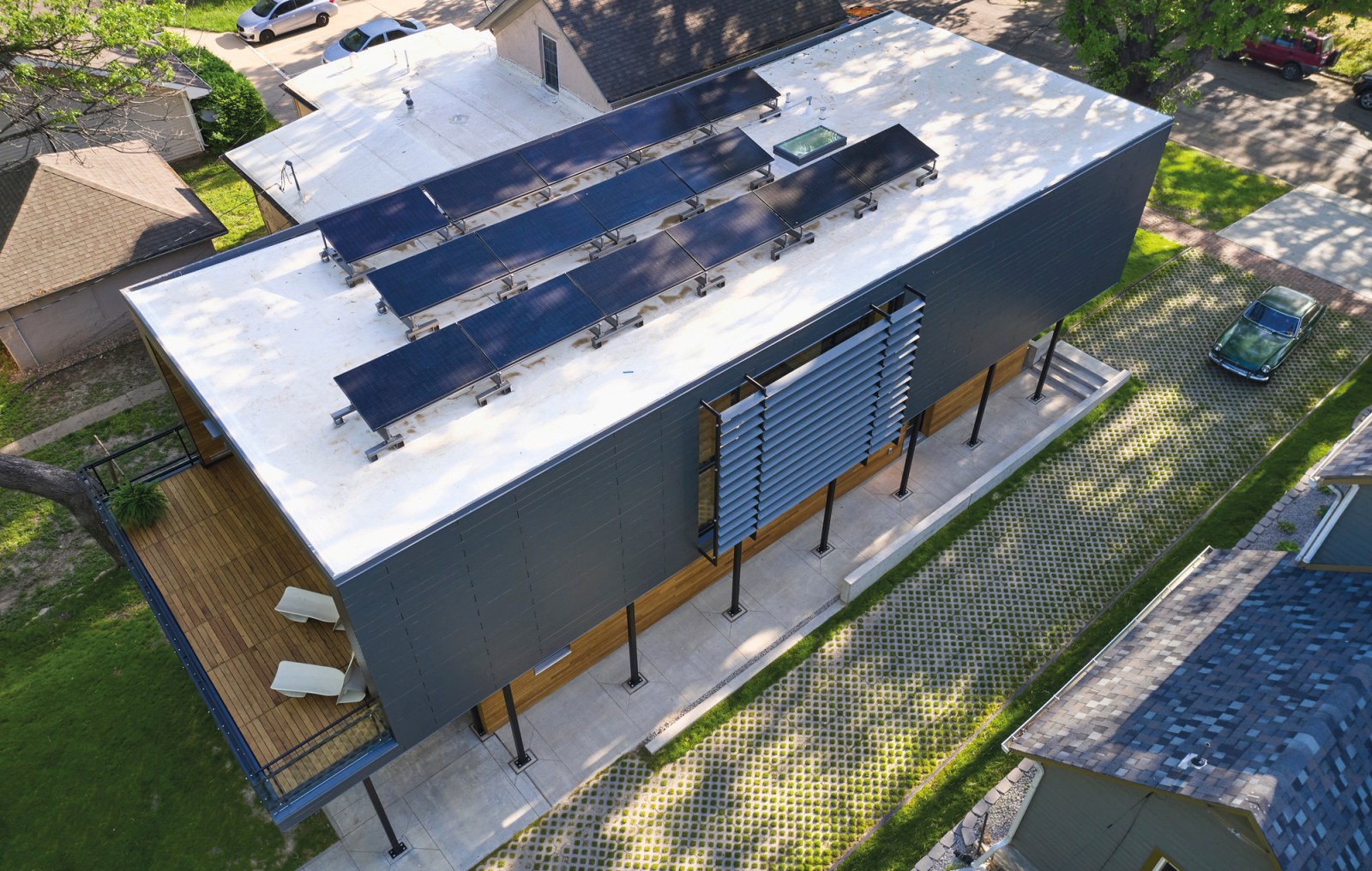 While impressive design is the star of this effort, the prodigious engineering that went on under the hood is no slouch either. Consider this: Ted and Kelly’s average monthly electric utility bill, spanning one of the hottest summers in Lawrence in memory, was $13.63. About $13 of that is Evergy’s base charge. A big reason for the minuscule bill, of course, is high solar production during the summer. Energy data will need to be collected over a full year to get a true picture of the cost savings, but the results so far are promising. According to Rockhill, at another passive certified residence Studio 804 did in Lawrence, the New York Street House, the owner’s average monthly bill for several years has been $17 for a whole electric house, $14 of which is Evergy’s base charge. “So basically he’s spending three dollars a month in electricity,” Rockhill said.