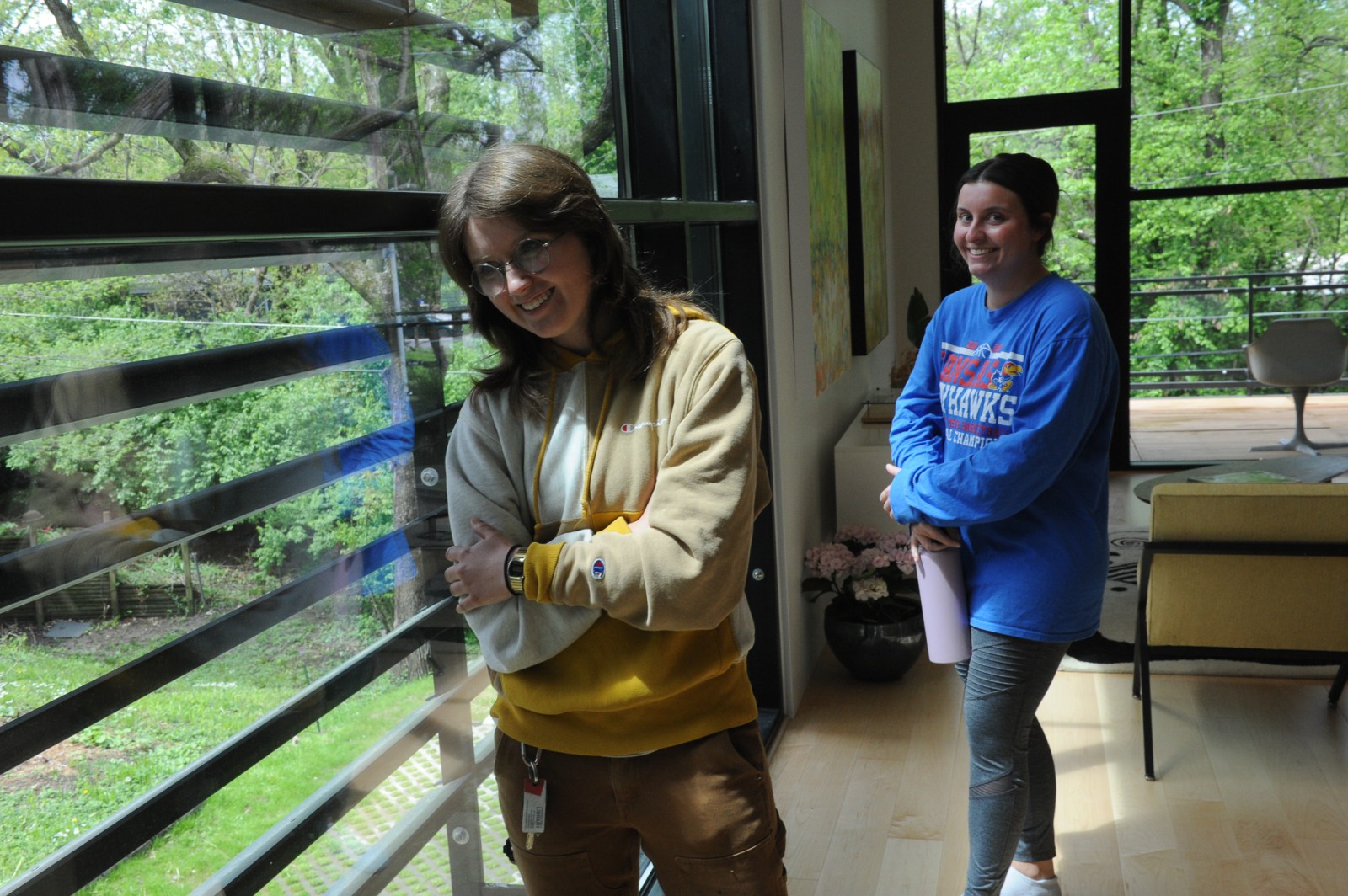 The Indiana Street House’s energy conservation is even more astonishing when considering the substantially greater use of glass than the New York Street House. A major reason why is the building’s inner cocoon, which is sealed tighter than Donald Trump’s tax returns and affidavits. “Our walls and roof on this house, the R-value is twice what the code requires,” Rockhill said, referring to the house’s insulation. The unsung hero responsible for the air tightness of the building was a student named Emily Sanders from Overland Park, who spent months going around the house constantly with a roll of tape and a vapor control membrane material called INTELLO to seal gaps. “It took longer than any of us expected, and it took a lot more tape than we thought it would because there were a lot more holes that needed to be made [in the structure] than originally planned,” Sanders said, somewhat wearily.