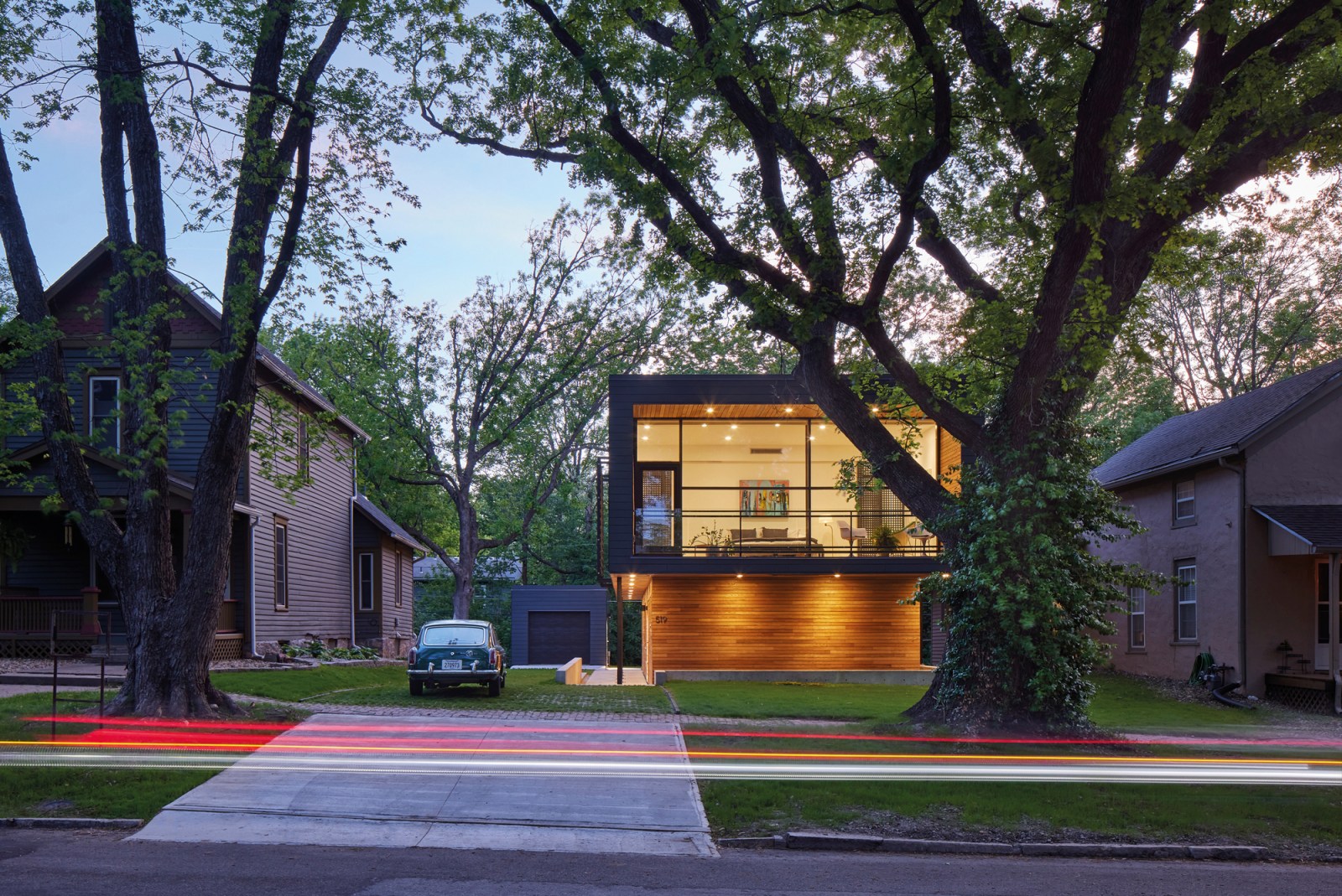 I was planning to ask Dan Rockhill about this in May when I met him and some of his 804 students onsite a few days before the Indiana Street open house. Perhaps anticipating my slant, Rockhill addressed the criticism up front: “I know the buildings that I do are really controversial because they look different, and that ticks people off,” he said, using an expletive. “I always harken back to the technology. We don’t build the way my neighbor’s houses were built because we have the capability of doing things technically that they never had available. I think universities are about ideas, and I like to be able to take advantage of those ideas and share them with the community. They can’t help but be different because they are fresh and new, and I bear responsibility for that, but I’m not going to continue with my head in the late 1800s.”