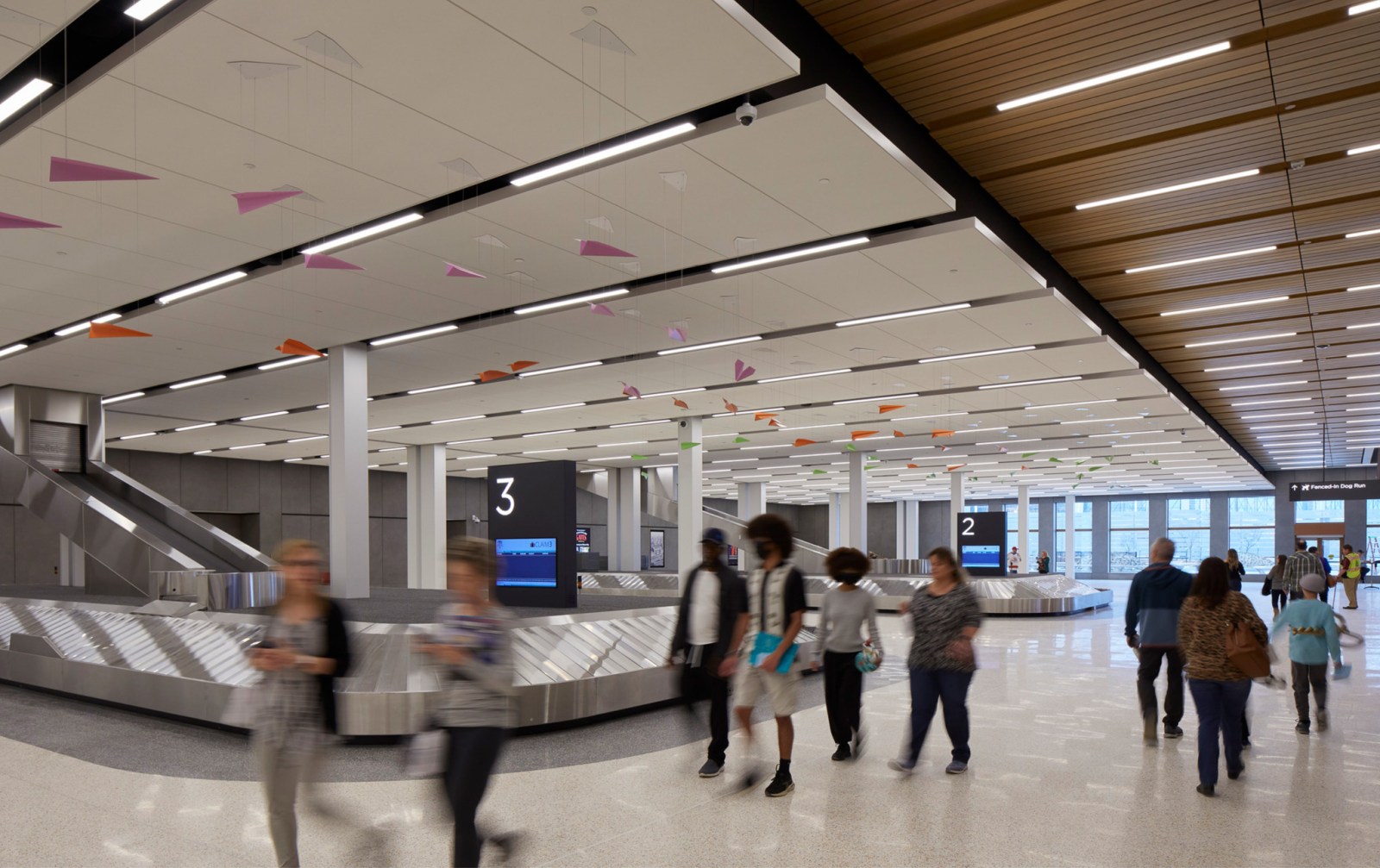 There’s so much that goes into an airport between, you know, concessions, advertisements, way finding, the various amenities, there’s a lot to compete for your attention. So part of how we see our task is that the base buildings, as we call it, if it can have enough simplicity and strength, then it’s not competing for attention with all those many things that fit into it. Having the base building provide a clarity, a calmness, and order really allows those concessions to come forward and be interesting and exciting but not in any way feel chaotic. Part of that is things like you’re pointing out, like providing recesses in the wall so that all of the advertisements are flush. We had to coordinate all of that with the structure. The whole wall has to be designed so that we can allow that to be within that depth. It’s part of an overall effort to say, can we give enough simplicity and clarity to the base building and the many elements that fit into it so that it doesn’t have the kind of chaos that can add to what’s already a very anxiety-inducing experience many times.