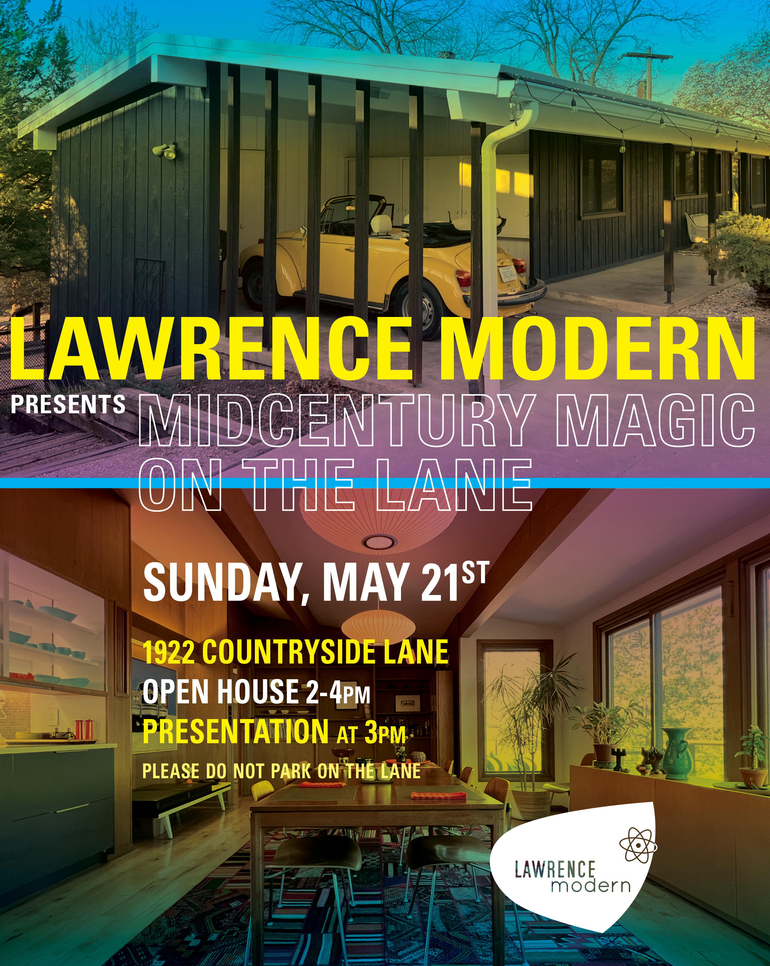 Following the house tour, the run of show will include talks from Dan and Lori McMinn, contractor Daniel Hoyt of Hoyt House, and our own Dennis Domer. Don’t miss this event! Come, and be ready to be inspired. This is rare opportunity to see one of the prettiest examples of midcentury modern style living in Lawrence, groomed to perfection!