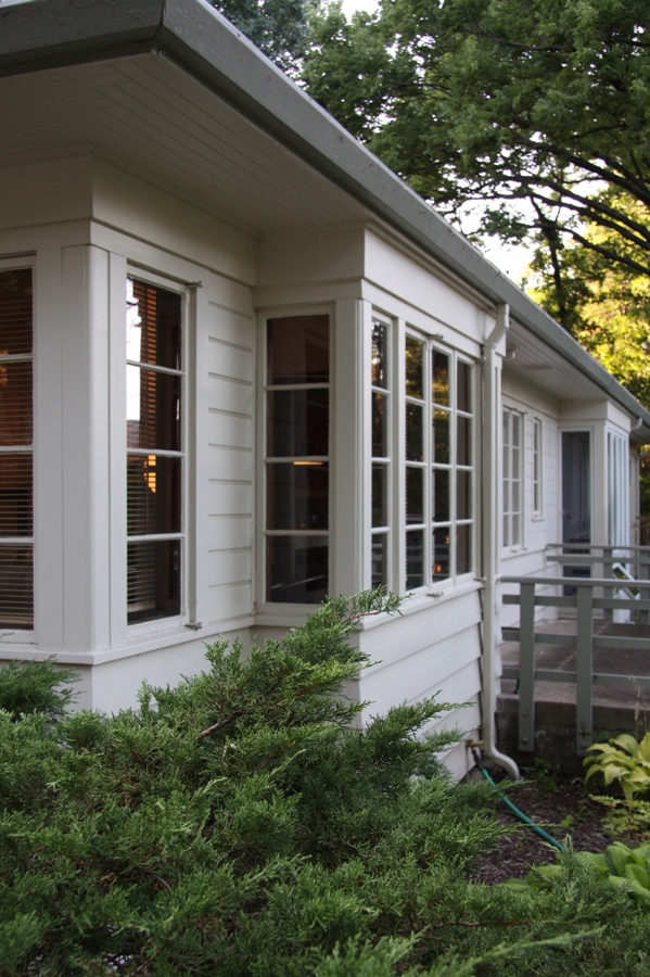 This tasteful, subtle modern house was designed by George Beal, chair of KU’s architecture program for many years, for a postal clerk and his growing family. Beautifully proportioned and laid out, the house has a floor plan that is a model of efficiency and functionality (see drawings). This is particularly evident in the large entry foyer, which is unusual in that it has doors leading to every room in the house. This gives the interior a special dynamism and also saves considerable space. Though nominally small, the Chewning House feels much larger as a result.